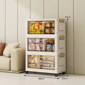 半小時前【新生代的收納選擇】免安裝 加厚多功能收納櫃,雙開門防潮防蟲 不佔空間,適合客廳、臥室或小戶型空間! - 40cm寬面【三層】可折疊+萬向輪NT$1590