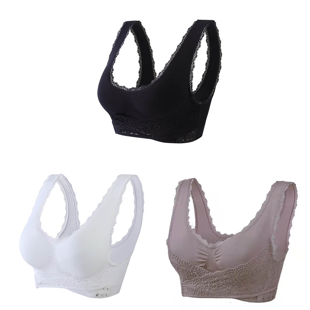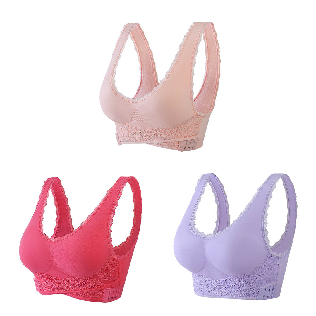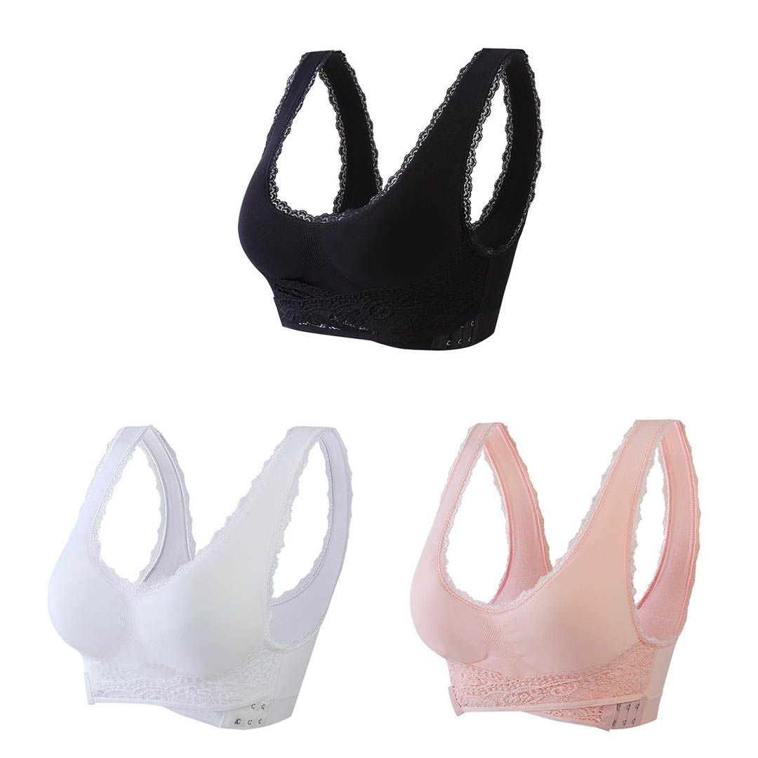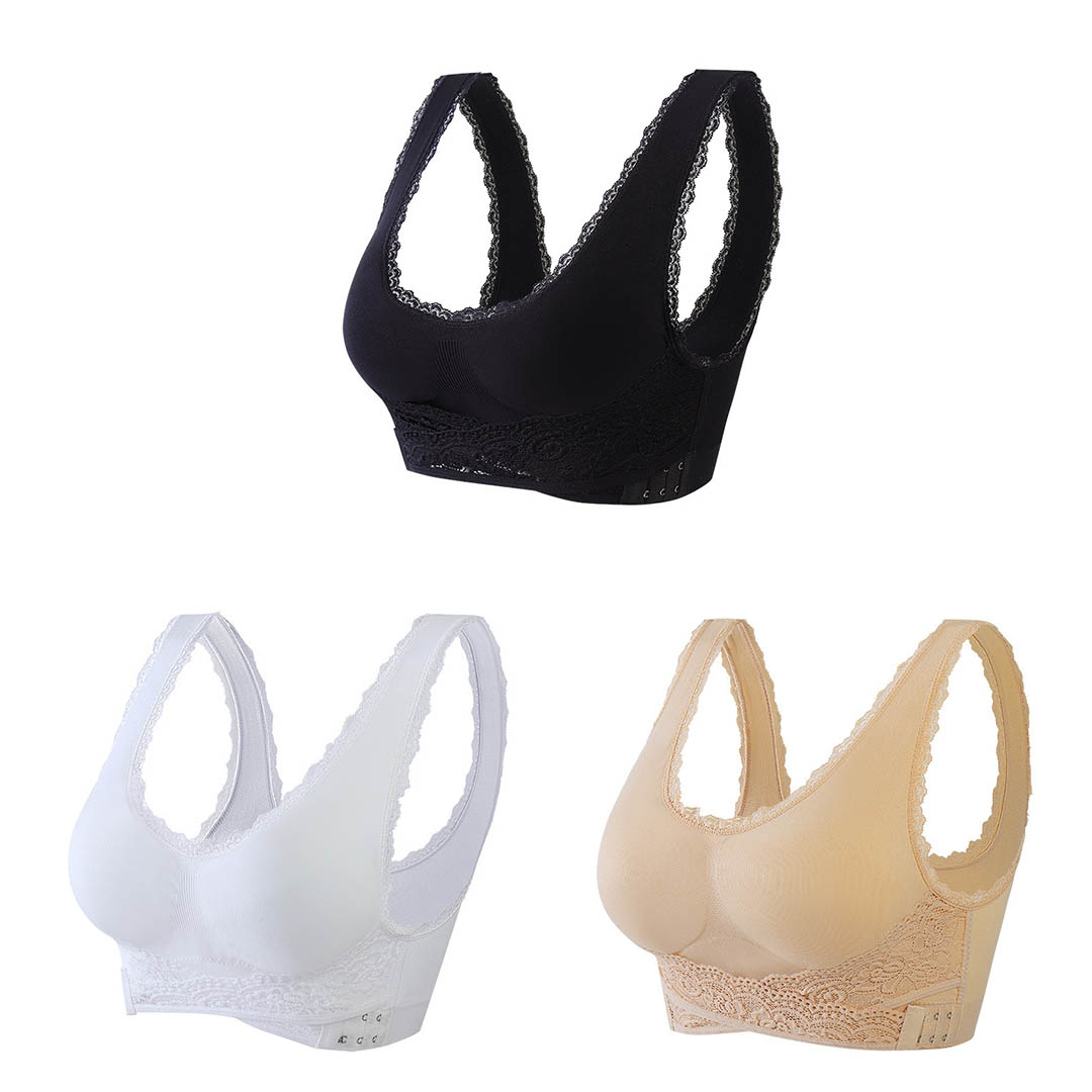 O encaixe do sutiã não precisa ser tão bagunçado, o sutiã fecha na frente para que você nunca perca tempo!