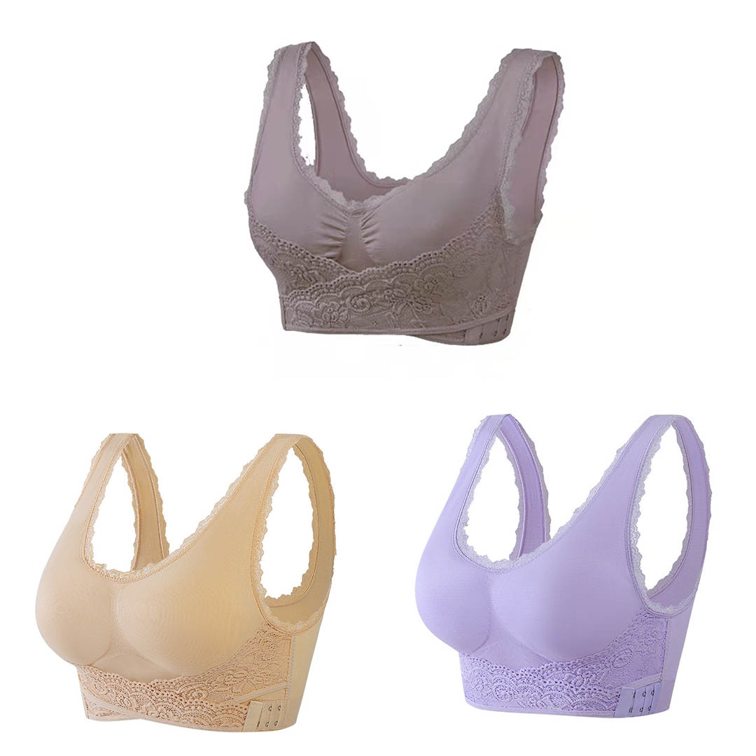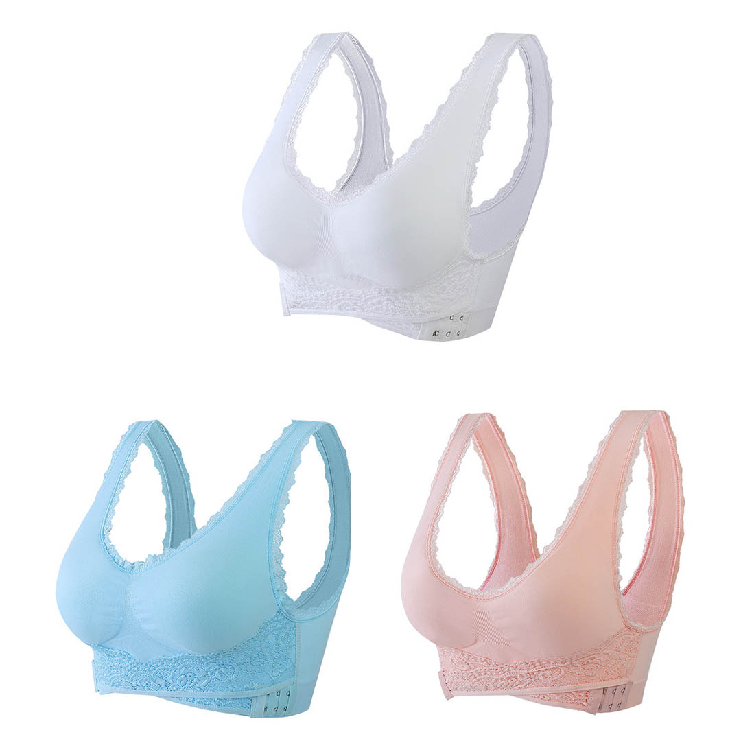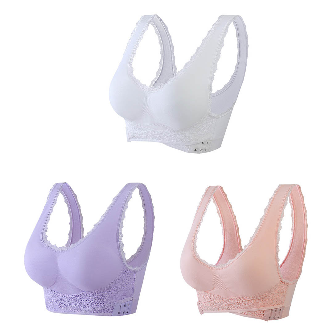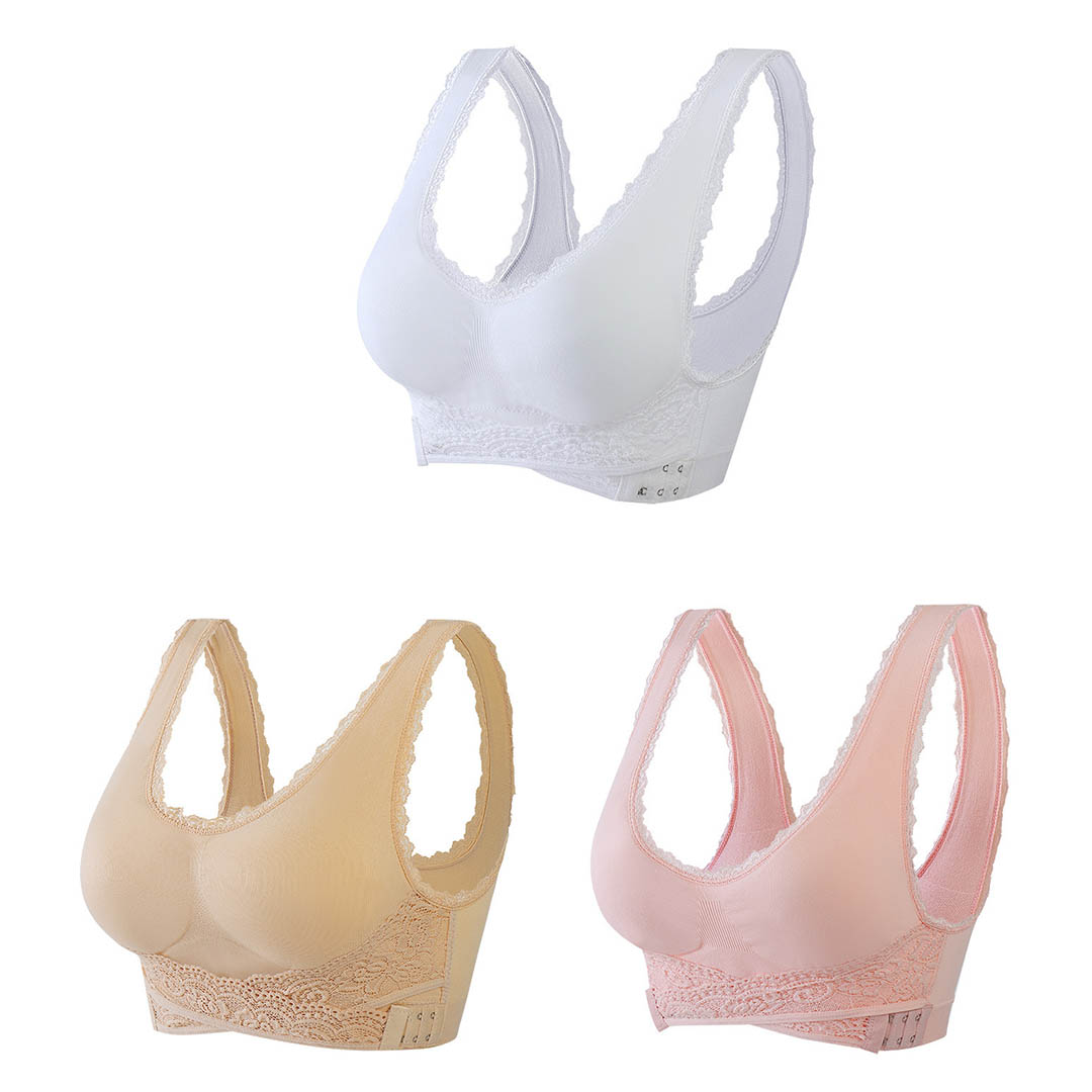 O encaixe do sutiã não precisa ser tão bagunçado, o sutiã fecha na frente para que você nunca perca tempo!